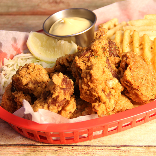 Choice of sauce and side with sesame slaw, aonori seaweed and lemon wedge1) Bandit Chicken - $9